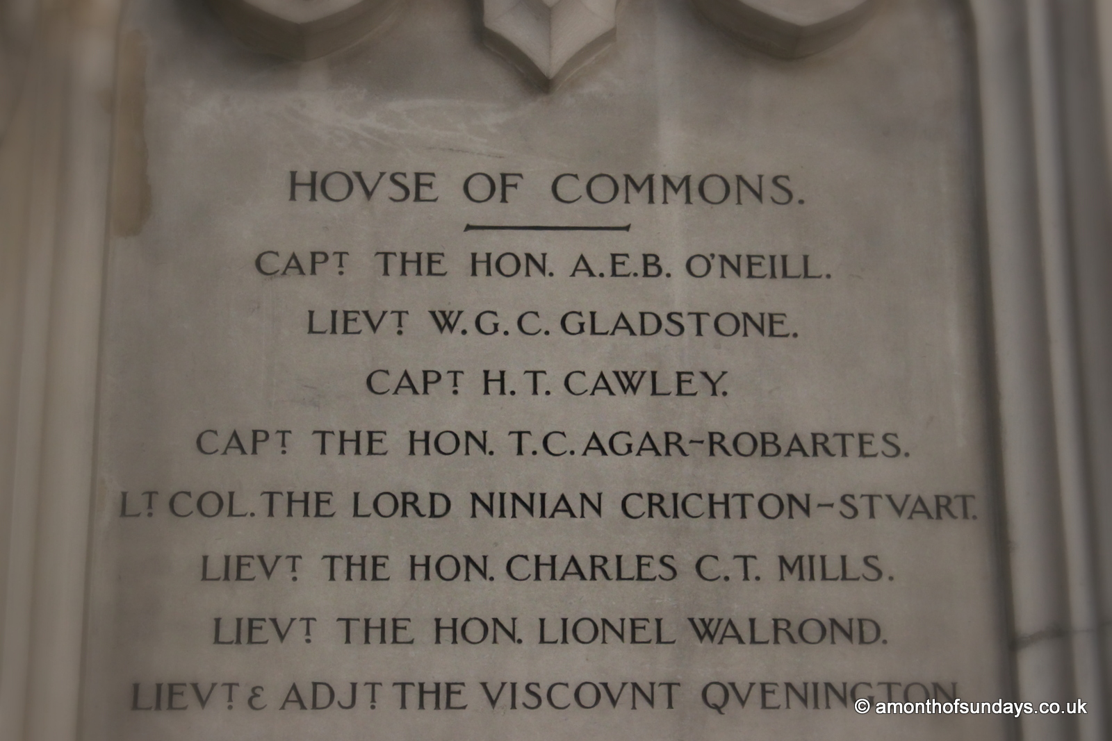 Now this has been included for its story rather than photographic merit. Do you remember when we talked about how much we loved Lanhydrock and getting to know the family? They had three sons who fought in the First World War, and Tommy, the eldest, was a great character and very well-loved. He was also, in fact, an MP, and therefore is commemorated in Westminster Hall on the war memorial, as Captain Agar-Robartes.